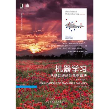 图书简介 | | 本书深入浅出地介绍了目前机器学习领域中重要的理论和关键的算法,涵盖机器学习的前沿内容,同时提供讨论和证明算法所需的理论基础与概念,并且指出了这些算法在实际应用中的关键点,旨在通过对一些基本问题乃至前沿问题的精确证明,为读者提供新的理念和理论工具。本书注重对算法的分析和理论的关注,涉及的内容包括:概率近似正确(PAC)学习框架、基于Rademacher复杂度和VC一维的泛化界、支持向量机(SVM)、核方法、boosting、在线学习、多分类、排序、回归、算法稳定性、降维、学习自动机和语言和强化学习。 |