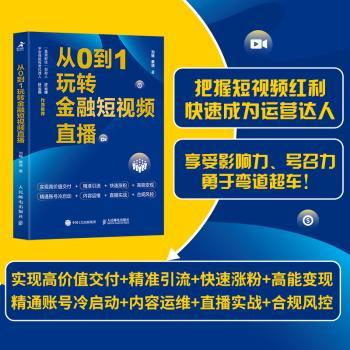 图书简介 | | 本书以金融短视频制作为核心,共包括8章,对短视频平台策略与算法进行了解析,就金融短视频品牌搭建策略、内容实操、账号运营、直播实战,以及短视频的拍摄、后期处理手法及特效制作等进行讲解。 |