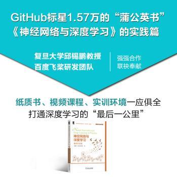 图书简介 | | 本书是《神经网络与深度学习》(蒲公英书)的配套实践书,由复旦大学邱锡鹏教授和百度飞桨团队合作完成。本书在章节设计上和《神经网络与深度学习》一一对应,并以模型解读+案例实践的形式进行介绍。模型解读主要聚焦如何从零开始一步步实现深度学习中的各种模型和算法,并结合简单的任务来加深读者对模型和算法的理解;案例实践主要强调如何使用飞桨预定义API来更好地完成实际任务,会涉及一些数据预处理问题。建议读者将本书和《神经网络与深度学习》结合阅读,在动手实践中更深入地理解深度学习的模型和原理。 |