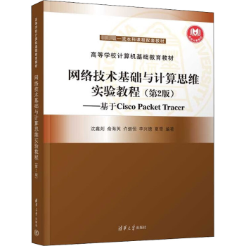 图书简介 | | 本书是与教材《网络技术基础与计算思维》(第2版)配套的实验教程,以CiscoPacketTracer软件为实验平台,针对教材内容设计了大量帮助读者理解、掌握教材内容的实验,这些实验也为读者运用Cisco网络设备设计各种类型和规模的网络提供了方法和步骤。本实验教程适合作为计算机网络课程的实验指南,也可作为用Cisco网络设备进行网络设计的工程技术人员的参考书。以《网络技术基础与计算思维实验教程》为教材的《网络技术与应用实验》MOOC已经在学堂在线和中国大学MOOC上线,2020年评为国家级一流本科课程。 |
