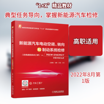 图书简介 | | 本书是“岗课赛证”模式下的典型工作任务式教材,由6个项目、16个学习任务组成。本书系统介绍电动汽车的电动空调压缩机检修、电动空调暖风系统检修、电动空调制冷系统检修、电动空调系统鼓风机检修、电动助力转向系统检修、电控制动系统检修等内容,随书配送典型任务的“实训工单”分册。书中附有指导学生规范操作的微课二维码引导学生完成实操训练,学生可反复观看,并借助线上资源形成理虚实一体化的教学模式。 |