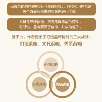 图书简介 | 本书作者提出了打造品牌势能的三大战略:价值战略、文化战略、关系战略。还明确提出了打造品牌势能的5个步骤:找寻、启动、强化、扩散和维持,并以此构建了品牌势能模型,为企业在数智化时代进行品牌建设提供了新思维。 |
