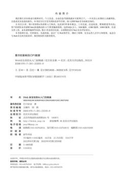 图书简介 | | 我们都生活在移动互联网时代,个人信息、企业信息、政府信息都暴露在互联网之下。一旦有居心叵测的人攻破网络,会造成无法估量的损失。本书结合红日安全团队的多年经验,深入讲解Web安全的相关知识。全书共有21个章节,第1章到第6章讲解Web攻防入门知识,包括HTTP基本概念、工具实战、信息收集、靶场搭建等内容;第7章到第20章讲解Web渗透测试的14个典型漏洞案例,包括SQL注入、XSS漏洞、CSRF漏洞、SSRF漏洞、任意文件上传、业务漏洞等内容;第21章是项目实战,主要模拟真实Web安全评估项目。 |