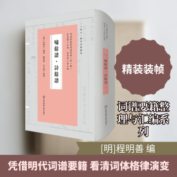 图书简介 | | 本书系程明善辑录并改编徐师曾《文体明辩》附录之《诗馀》图谱而成,是明代后期出现的又一部重要词谱,其流行和影响甚至超越和遮蔽了原著。本书的整理以明万曆四十七年已未(一六一九)程明善流云馆自刻本《啸馀谱·诗馀谱》为底本,主要以明万曆初年闽建阳游榕铜活字印本《文体明辩》附录《诗馀》、清康熙元年壬寅(一六六二)张汉瑞凝堂重订本《啸馀谱·诗馀谱》及近人赵尊岳辑刻《明词汇刊》本《啸馀谱·诗馀谱》进行对校,以见纂辑本、重订本与原编本之异同及变化,另参校唐宋以来重要的词集选本、别集、总集及词谱著作,或有助于瞭解其图谱编纂、例词採集的文献来源及异同得失情况。书末附录序录、评论两种资料,以备参考。 |