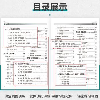 图书简介 | | 本书全面系统地介绍了Maya 2016的操作方法及实际运用,内容包含Maya的建模、灯光、摄影机、材质与纹理、渲染技术、动画技术、动力学与特效。本书主要针对零基础读者编写,是入门级读者快速、全面掌握Maya 2016的必备参考书。本书内容均以课堂案例为主线,通过对案例的实际操作,读者可以快速上手,熟悉软件功能和实例制作思路。书中的软件功能解析部分使读者可以深入学习软件功能。课后习题可以拓展读者的实际应用能力,提高读者的软件使用技巧。课堂练习是相对比较综合的案例实训,可以帮读者快速掌握Maya的设计思路和方法,顺利达到实战水平。 |