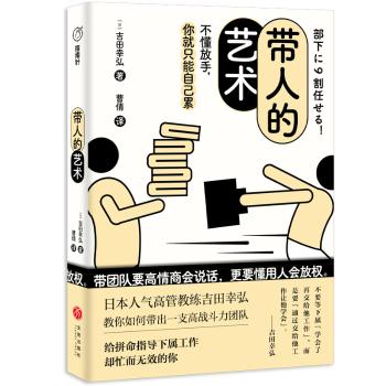 图书简介 | | 这是一本管理类图书。本书从日常工作细节入手,指出管理者要从观念意识上做出转变,如从“服从型管理者”变为“服务型管理者”、从“命令”改为“商谈”,并在实际工作中做出行为上的转变,如对人的态度不因表现而异、不使用模棱两可的词、找到团队中的“次级管理者”等,让管理者逐步实现将工作的九成交给下属,以腾出充裕的时间,做更重要的事,发挥更重要的价值。吉田幸弘,日本沟通培训师,曾就职于某大型旅游代理公司,先后在学校、外企、广告代理公司担任管理者等。 |