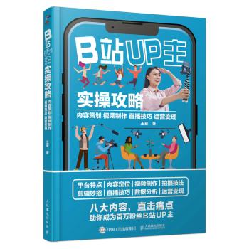 图书简介 | | 本书共9章,先总体介绍了B站的发展历程及平台特色,对B站账号创建及信息设置的操作进行了讲解,随后,从内容创作的角度介绍了3种内容形式的投稿过程与创作技巧,帮助B站UP主提升内容质量,最后介绍了如何分析与运营B站账号,发掘与拓宽变现渠道。本书注重案例的分享与操作的讲解,力求用简洁的语言让读者知悉B站的创作运营体系。。 |