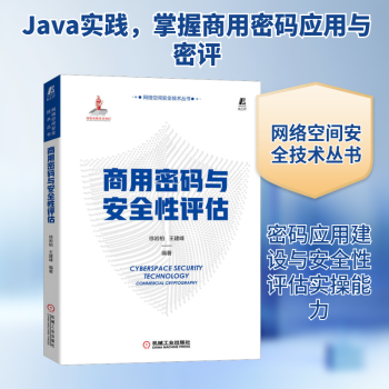 图书简介 | | 本书将Java开发与信息系统的密码应用建设、密评相结合,对典型密码应用场景的软件编码实现、涉及的主流密码产品以及安全性评估方法进行了介绍和实践。全书共9章,包括密码技术发展与架构、密码技术实现基础、数据完整性保护与杂凑算法、数据加密保护与对称密码算法、用户身份认证与公钥密码算法、通信安全与密码协议、口令加密和密钥交换、密码应用方案计和商用密码应用安全性评估等内容。 |