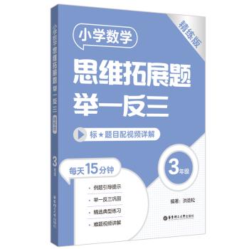 图书简介 | | 本书为小学数学思维拓展题举一反三“精练版”,共包含24套练习+6套挑战测试+2套学期培优卷。其中24套练习是与“导学版”一一对应的练习,巩固一周所学;每4周设置一套挑战测试,巩固一个月所学;每学期设置的学期培优卷综合性更强,能有效考查学生上、下学期知识掌握程度。本册为3年级。 |