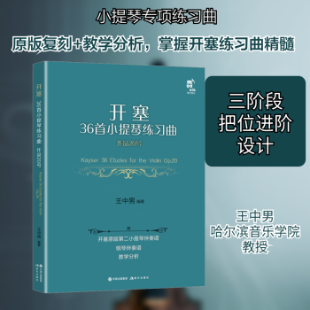 图书简介 | | 本书是以1886年开塞仍在世时期出版的、被视为等同于初版的版本为蓝本,并以很大限度的重视与尊重原版为宗旨,来进行整理研究和编著的。其中包含三个部分,即《开塞36首小提琴练习曲》《第二小提琴伴奏谱与教学分析》《钢琴伴奏谱》。原版是以12首练习曲为一册,由三册组成。仅从左手方面来划分的话,首册是在第1把位范围内的;第二册是在第1把位至第三把位的;第三册是至更高把位的练习曲。《开塞36首小提琴练习曲作品20号(第二小提琴·钢琴伴奏版)》中的记号、弓法、指法、曲目排序等,在保留原版内容的同时,对认为有必要的地方做了整理和调整。关于指法,《钢琴伴奏谱》中保留了开塞原版的指法。《开塞36首小提琴练习曲》中在保留了原版指法的同时,也在编者认为有必要处添加了不同的选择。学生可以把它们进行比较来学习,分别都加以练习才好。 |