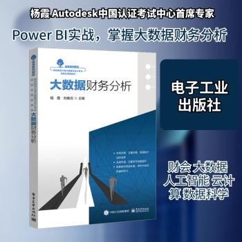图书简介 | | 本书主要介绍大数据财务分析的基本概念与应用,内容分为6个项目:初识PowerBI、获取数据、数据基础操作、财务数据分析模型、制作可视化财务报表、财务应用中的图形对象。本书将理论与实践操作相结合,通过大量的案例帮助读者快速了解和应用大数据财务分析相关技术,并对重要的核心知识点加大练习比例以达到熟练应用的目的。 |