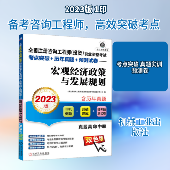 图书简介 | | 本书共分11章,主要内容包括宏观经济管理、投资体制与投资政策、财税体制与财税政策、金融体系与金融政策、产业政策、社会政策、生态文明建设、规划体系与发展规划、国土空间规划、重点领域发展规划与政策、国家区域重大发展战略。各章内容包括本章核心考点分布、专家剖析考点、本章核心考点试题、本章真题实训、本章真题实训答案及解析、本章同步练习、本章同步练习答案。书中附两套2023年考试预测试卷。 |