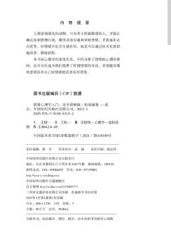 图书简介 | | 本书分上下两个部分,从心理学的角度出发,不但分析了情绪的心理学密码,还全方位地为我们提供了控制情绪的方法,希望能对那些意欲培养自己好情绪的读者有所帮助。掌握好它,你就掌握了令自己快乐的钥匙,同时还能把幸福传播给别人。 |