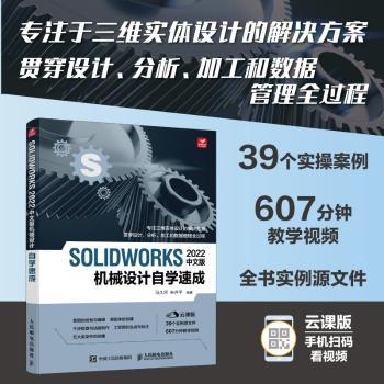 | 图书简介 |  | 本书结合具体实例由浅入深、从易到难地介绍SOLIDWORKS 2022软件在机械设计中的相关知识和使用方法。全书共12章,讲解了SOLIDWORKS 2022概述、草图相关技术、基于草图的特征、基于特征的特征、装配体的应用、工程图基础、连接紧固类零件、轴系零件、箱盖零件、叉架类零件等内容。 |  |