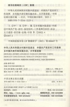 图书简介 | | 本书主要收录与落实乡村振兴责任制相关的《中华人民共和国乡村振兴促进法》《中国共产党农村工作条例》《乡村振兴责任制实施办法》,非常适合群众学习使用。 |