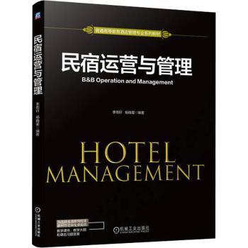 图书简介 | | 本书从民宿的基本定义入手,有针对性地介绍了国内外民宿业的发展历程及各个代表国家的民宿发展特点,对民宿的起源与发展、我国民宿业发展概况、民宿筹建、民宿设计、民宿岗位设置与人员管理、民宿服务管理、民宿营销管理、民宿后勤管理、民宿的发展趋势做了详细的介绍。 |
