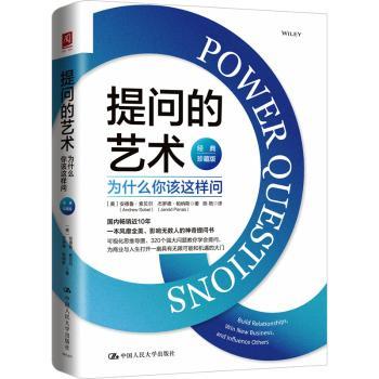 图书简介 | | 本书是一本教你如何通过富有技巧性的提问来提高沟通效率并提升自身影响力的书。人们普遍我们认为,我们之所以赢得生意是因为自己的聪明和勤奋以及只说对的事,然而《提问的艺术:为什么你该这样问(经典珍藏版)》打破常规,强调巧妙提问远比给出答案更为重要。无论德鲁克这样的大师,还是乔布斯这样的奇才,抑或是苏格拉底这样的圣人,提问都在他们的一生中扮演了重要的角色。对我们而言,无论想快速获得生意,立即获得潜在的客户的尊重与信任,让会议不偏离主题,还是想让交谈对象感到备受关注,保持良好人际关系,获得更多人生后示……,无疑都得学会聪明地提问。《提问的艺术:为什么你该这样问(经典珍藏版)》用具体的问题,真实的案例,为读者打造了一个提升提问技巧的实用宝典。问得不同,人生便不同。 |