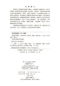 图书简介 | | 本书共四个模块,包括:课程简介及学习要求、医学基础认知、各系统基础和岗位疾病、实用技术。内容涵盖人体解剖生理学基础知识、细胞与组织、诊断学基础知识、运动系统解剖生理与常见疾病、血液系统构成生理与常见疾病等。 |