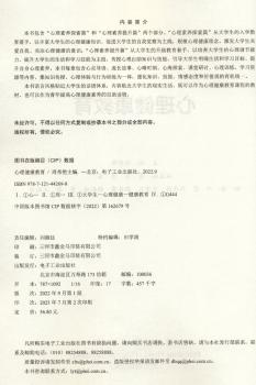 图书简介 | | 本书包含“心理素养探索篇”和“心理素养提升篇”两个部分。“心理素养探索篇”从大学生的入学教育着手,以丰富大学生的心理健康知识、促进大学生的自我觉察为主线,根植心理健康理念,激发大学生关爱自我、关注心理健康的意识,“心理素养提升篇”从大学生的升级教育着手,以培养大学生的心理调节能力、提升大学生的生活和学习技能为主线,传授心理自助知识与技能,引导大学生明确生活和学习目标、提升自身心理素养。 |