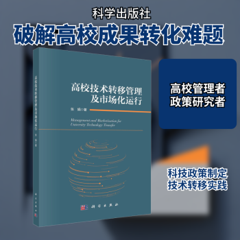 图书简介 | | 本书系统梳理和回顾了我国改革开放以来高校科技成果转化的改革和发展历程,针对当前高校技术转移面临的专业人员缺乏、激励机制不健全、科技成果供需对接不畅、融资渠道偏少等现实困境,从理论和实践两方面阐释了推进高校技术转移市场化运行的必然趋势,并分别从高校技术转移机构运行、激励机制设计、科技成果价值评估、科技成果转化资金支持、职务科技成果国有资产管理等方面对市场化改革的政策探索和实践进展进行了分析,总结了一些规律和特点,提出了推进高校技术转移市场化运行的一些探讨性建议。 |