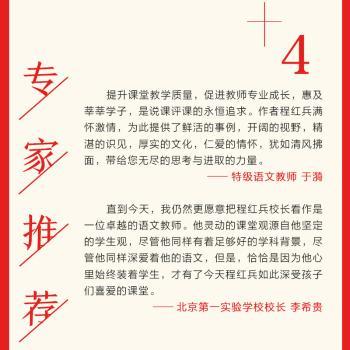 图书简介 | | 本书从说课和评课两个方面,从一个好的课堂如何运行的角度,分析课堂模式,语文教学的共性和个性,以及如何激发课堂中的师生智慧等方面出发,从具体的观课和评课的具体案例出发,来向我们呈现——好的课堂应该是怎样的?课堂上真正关注的应该是谁?抛弃客套、虛假和无关痛痒的套话,帮助教师提升课堂教学质量,促进他们的专业成长,才是说课评课的永恒追求。 |