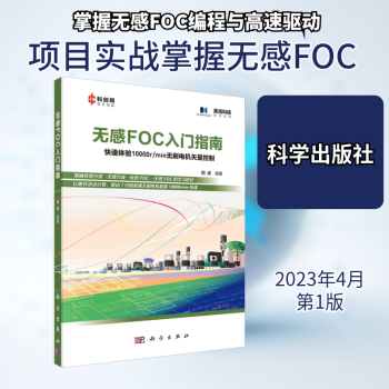 图书简介 | | 本书着眼于实践入门,通过遍历项目开发从0到1的过程,带领读者快速理解、快速实现无感FOC(fieldorientedcontrol,磁场定向控制),以较短的时间、较低的代价初步掌握无感FOC的基本原理和运行特性,最终实现10000r/min以上的高速驱动。全书共5章,主要内容包括无感FOC概述、开发环境准备、无感FOC算法原理和编程实践等。 |