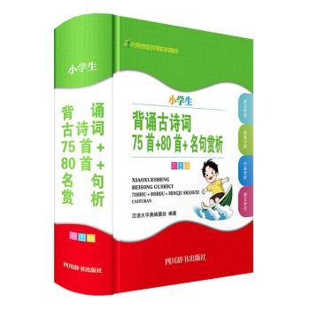 图书简介 | | 本书收录了小学语文新课标所列“古诗词背诵推荐篇目”75首,并根据小学生的认知特点增收了80首古诗词,此外还精选了诗词名句48条。全书诗词原文采用文字与汉语拼音一一对应的形式列出,有利于认知背诵。译文对原文进行了大意串讲,注释对诗词中的疑难字词句作了浅显通俗的讲解,作者简介对作者生平作了简单介绍,赏析对原文进行了简单赏析,方便阅读朗诵时理解,一些诗词还设有“精华名句”栏目。为方便区别同一诗名或词牌名下有多首诗词的情况,本书在目录上将所收诗词的第一句列出,以利于准确掌握。 |