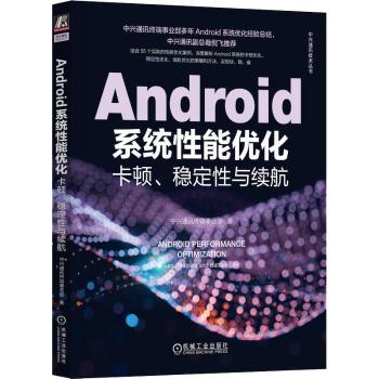 | 图书简介 |  | 本书是一本针对Android全系统性能优化的著作,面向应用开发、系统框架定制开发、整机性能优化3大场景,系统、深入地讲解Android系统的卡顿优化、稳定性优化、续航优化的策略与方法。本书是中兴通讯官方多年Android系统优化经验的总结,书中用55个实际的性能优化案例,图文并茂、深入浅出地讲解了分析问题的思路和解决问题的过程。 |  |