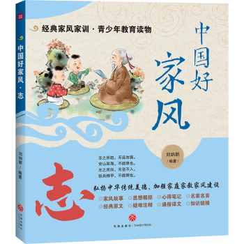 图书简介 | | 本书从立志、勤学、修德、爱国四个方面精选了中国历史上具有重要影响人物的家风家训故事,本书收录周公、孔子、刘邦、班固、杨震、诸葛亮、嵇康、韩愈、苏轼、朱熹、王阳明等立志故事。 |