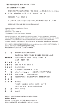 图书简介 | | 本书从理论概述、对理论的批判与评论、测量理论的量表清单、未来研究建议、理论的主要参考文献、实践启示六个方面出发,介绍管理与组织领域中40个颇有影响力的理论。 |