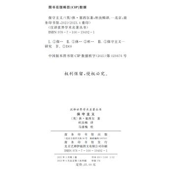 图书简介 | | 本书描述了一般的守旧思想,特别是保守党人和具有保守思想的人的守旧惧新的心理状态,英国保守主义的渊源和形成过程,以及柏克对近代保守主义的影响。 |