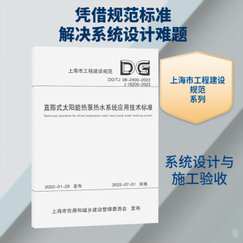 图书简介 | | 为贯彻国家可再生能源利用与建筑节能的相关法规和政策,规范本市直膨式太阳能热泵热水系统的设计选型、施工验收、性能测试及运行维护,制定本标准。本标准适用于本市新建、扩建和改建的民用建筑中采用直膨式太阳能热泵热水系统的工程。直膨式太阳能热泵热水系统的应用应充分考虑建筑使用功能和空间、施工安装和维护的要求,结合国家有关节能减排、安全卫生和环境保护等政策,通过技术分析后确定。 |