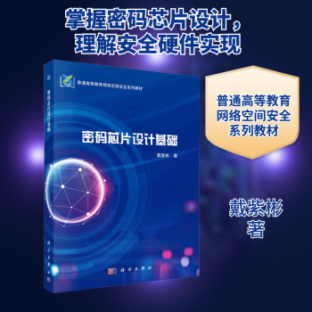 图书简介 | | 全书共分7章,全面介绍密码芯片设计的基础知识和关键技术。主要内容包括:密码芯片的基本概念与性能指标,密码芯片的总体设计与结构设计,逻辑运算、模加运算、模乘运算、有限域乘法运算、移位操作、比特置换、查表操作、反馈移位寄存器等8类密码处理单元设计,存储单元与互联单元设计,分组密码算法DES、序列密码算法Grain-80、杂凑算法SHA1、非对称密码算法RSA的核心运算、大整数乘法芯片的数据路径设计和控制器设计,以及密码芯片安全防护等内容。 |