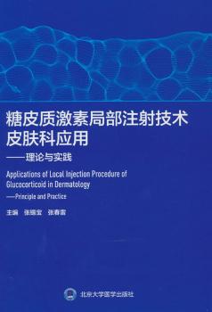 图书简介 | | 本书分十三个章节,涵盖糖皮质激素生理及药理作用、分类、效能、不良反应等。尤其对常用局部注射糖皮质激素的药物特性及作用机理、使用剂量,配置浓度,治疗时间等具体操作内容做了较为详细的描述,分享了局部注射糖皮质激素在神经性皮炎、瘢痕疙瘩、原发性皮肤淀粉样变性、白癜风、痤疮、外阴瘙痒症、阴囊瘙痒症、掌跖角化症、肉芽肿、襄肿及部分湿疹样等多种常见、难治性皮肤疾病的经验,极大地丰富了糖皮质激素局部注射治疗皮肤病的临床应用,资料数据详细、内容详实,书中的400余幅插图展示了治疗方法及临床疗效,实用生动,图文并茂,便于学习及临床皮肤科医生参考应用。 |