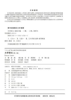 图书简介 | | 本书是在第2版的基础上,多年深入教学与研究,在借鉴国内语文教学经验与教材编写体例的基础上,根据当前新时代中国经济社会发展对高素质技能型人才的需求,为培养和提高高职院校学生的语文能力与水平而修订的适应性教材。全书分为人生百态、文化长廊、人与自然、走近科学、人在职场、名家讲坛和应用文汇七个单元,力求体现人文性、职业性、实用性和时代性的特征。 |