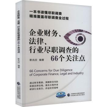 图书简介 | | 本书主要着眼于尽职调查实际操作中最常见、最重要的66个核心关注点,分别从企业的财务、法律、行业三个方面展开详解,同时采用了大量案例用于支撑理论分析,利于尽调人员理解掌握,更好地将理论与实际相结合。 |
