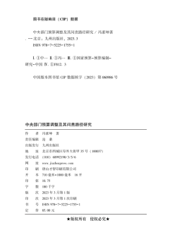 图书简介 | | 本书主体部分共四章,内容包括:预算调整概述、中央部门及其预算调整、中央部门预算调整实证分析、中央部门预算调整问责路径探索等。 |