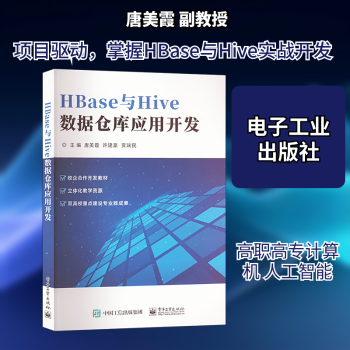 图书简介 | | 本书共有9个项目,包括认识数据库与数据仓库、安装与部署HBase、使用HBase Shell构建博客数据库系统、使用HBase Java API开发博客数据库系统、安装与配置Hive结构化数据仓库、使用Hive定义优惠券数据、使用Hive Shell实现优惠券消费数据的分析及处理、使用Hive Java API开发优惠券消费数据分析应用、基于HBase和Hive的电信运营商用户数据分析实战。 |