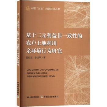 图书简介 | | 本书首先对国内外的相关文献与历史研究资料进行综述,然后以计划行为理论为研究基础,构建基于二元利益非一致性的农户土地利用亲环境行为理论分析框架,通过甘肃、陕西、河北和山东四省粮食种植户(764个)与蔬菜种植户(756个)的实地调查数据,运用结构方程模型、有序probit模型及多元线性回归模型、层次回归模型等实证方法,验证不同类型二元利益非一致性对农户土地利用亲环境意愿与土地利用亲环境行为的影响等,最后根据全书的各项研究结论提出相应的政策参考。 |