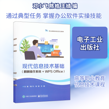 图书简介 | | 本书包括四个学习任务,分别为庆祝建党百年活动策划书制作、产品销售报表制作、产品推介演示文稿制作和新一代信息技术调研报告制作,内容涵盖6S管理制度、麒麟操作系统、文字文稿处理、电子表格处理、演示文稿制作、新一代信息技术、信息检索、信息素养与社会责任等。 |