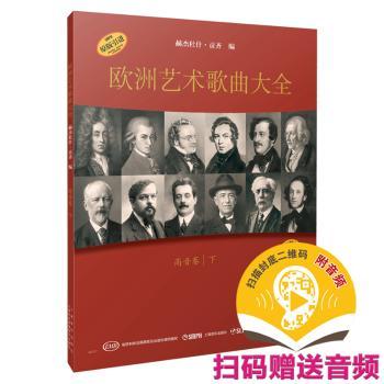 图书简介 | | 本套书共分为六册,曲目依据难易程度编排,适用于高、低音的演唱。每一册都是独立的单元,包含六种语言(英语、法语、德语、俄语、意大利语以及西班牙语),呈现了从早期巴洛克到20世纪不同时期的代表性作品。另外,为了帮助读者理解歌词,书中另附逐句翻译的中英文歌词大意,西里尔文字则采用音译,同时,为展现出作品的原貌,本书尽量保留了歌曲未加编辑的原本样貌。本册为《高音卷下》。 |