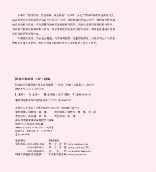 图书简介 | | 本书以“看图识病、类症鉴别、综合防治”为目的,从生产实际和临床诊治需要出发,结合笔者多年的临床教学和诊疗经验进行介绍,包括鸡病的感染与防控、鸡病毒性传染病的鉴别诊断与防治、鸡细菌性传染病的鉴别诊断与防治、鸡寄生虫病的鉴别诊断与防治、鸡营养代谢病的鉴别诊断与防治、鸡中毒性疾病的鉴别诊断与防治、鸡其他普通病的鉴别诊断与防治等方面内容。 |