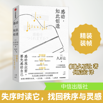 图书简介 | | 本书完整收录久石让的工作哲学与人生感悟。久石让结合具体的配乐案例,细说作曲工作的方方面面:在音乐理想与商业成绩之间如何平衡;工作受挫、走入死胡同后要如何突围;保持一流,没有高深的秘密但有可复制的思维和方法;捕捉日常细节里触动自己的一切,也许就会带来改变人生的契机。 |