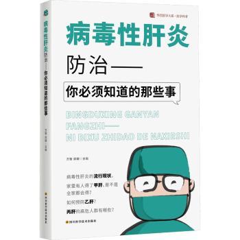 图书简介 | | 本书共分六章。绪论主要介绍了人类发现、应对病毒性肝炎的历史和现今取得的新进展,第1章首先以启发式问答形式引出病毒性肝炎的基本知识,第2章至第6章分别对甲、乙、丙、丁、戊5种病毒性肝炎作了全面地介绍,包括疾病简介、传播途径、临床症状、辅助检查、就诊指导、预防策略、常见误区等方面的实用知识。 |