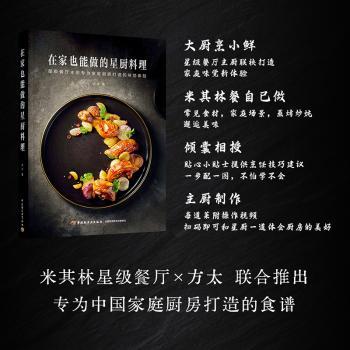 图书简介 | 本书通过四位星厨的分享,掌握33道米其林美食的居家烹饪技巧,随时随地开启舌尖上的奢享之旅。四位米其林星级餐厅主厨将高档餐厅的33道星级料理“家常化”,选用常见食材和烹饪方式,让更多读者能够在家做出不输米其林餐厅的美味,体验“米其林”文化内涵。 |