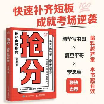 图书简介 | 本书分为五部分,内容包括:失分的本质 你为什么会偏科、破解偏科 打破失分的负向回路、对待偏科 你可以试试这些高效学习法、抢分实战 如何把弱科“捡”起来、简单有效的考场策略 助你从容应对考试。 |