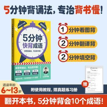 图书简介 | | 本书主打“五分钟快背”这一特色,以“一分钟看图背”+“两分钟翻译背”+“两分钟填空背”这样层层递进的方法指导小学生高效记忆成语。本书以成语解释(学霸笔记体标注)、五分钟背诵指导(看图背+翻译背+填空背)、课后练习的体例进行编排,聚焦于高效科学的背诵方法,内容富有创新,同时辅以漫画图解、手写笔记等赋能形式,提高学生记成语的积极性,降低记忆难度,让学生在短时间内能真正理解成语的意思,牢固记住成语,学会运用成语。 |