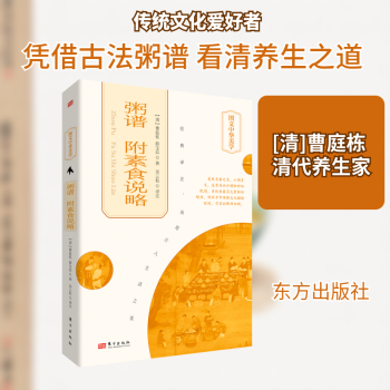 图书简介 | | 本书包含《粥谱》《素食说略》两本饮食书。其中,《粥谱》选自曹庭栋《老老恒言》的卷五“粥谱说”,论述了粥食的种类、养身功效,并介绍近百种粥食制作方法。《素食说略》强调了素食的益处,并罗列一百七十余种素食的制作方法。 |