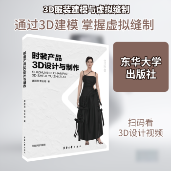 图书简介 | | 本书是应服装产业数字化发展要求,配合服装设计专业建设而撰写的时装产品3D设计与技术专业书籍。本书从知名品牌合作的女装产品开发项目中选取实际款式案例,共设14项任务,包括连衣裙、小礼服、西装外套、短裙4个品类。每项任务设定了任务要求、款式分析、3D虚拟缝制、工艺细节、面辅料属性设置、样衣虚拟展示等内容。款式设计符合流行趋势,涵盖了代表性的结构设计和工艺设计,安排了多品种代表性面辅料品类。每个章节附3D虚拟设计与缝制操作视频二维码,从链接网站可下载全部款式的CAD 样板文件,以供同步练习。 |