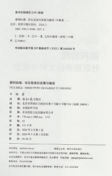 图书简介 | 本书分为七章,内容包括:导论、田野概述与分析框架、本土福利情境:中国社区服务的影响机制、福利资源利用:社区服务的生产与再生产、福利供求调适:输送激励、风险管控与自组织、福利效应考察:作为治理技术的社区服务、研究成果与政策建议。 |
